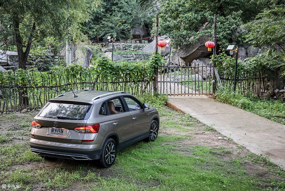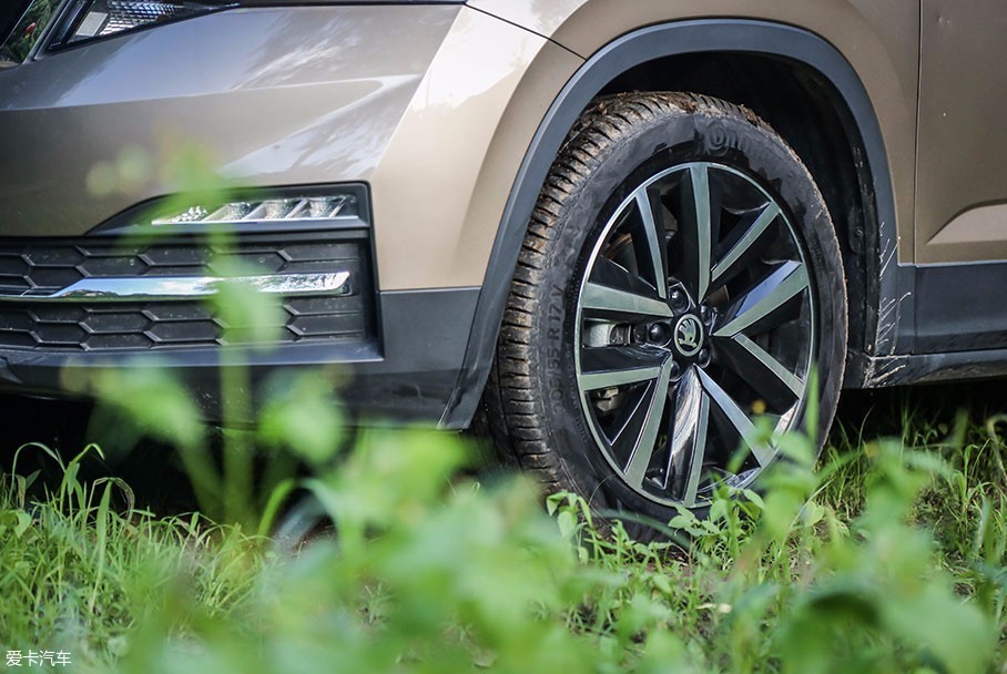 作为一台城市型SUV,柯米克仍然需要担负起偶尔出行中的非铺装道路任务,略有些湿润的泥土此刻依附在胎面上,伴随着周边翠绿草地以及车身硬朗线条的映衬,让柯米克此时颇有些硬派SUV的韵味。