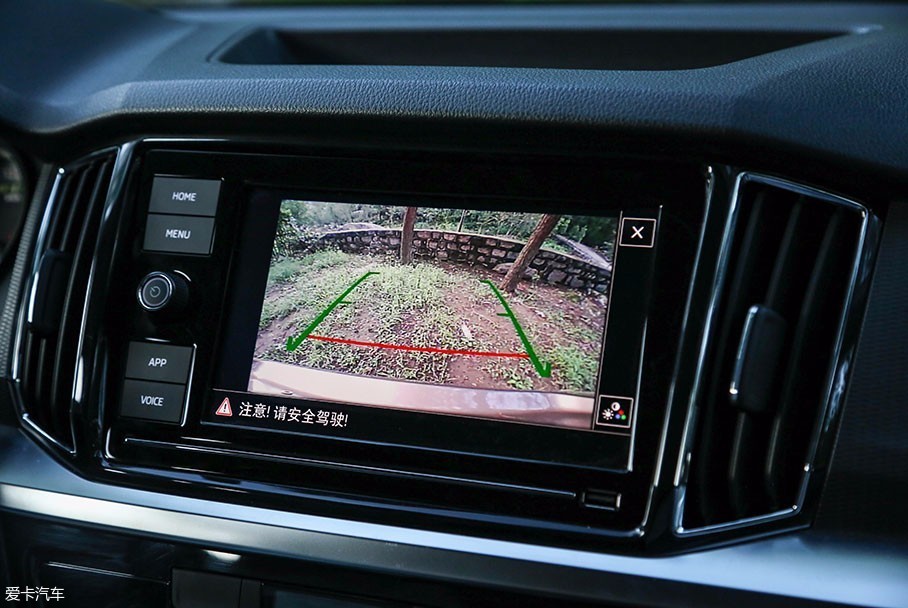 乡间小道路面狭窄,进来容易出去难。好在柯米克配备了倒车影像,更贴心的是还可以对明亮度对比度等等进行细节调整,让不同状态下的屏幕显示更加清晰,这一点属实少见,非常贴心。屏幕上的虚拟辅助线经过实际测验,车尾接触两绿一红线后,距离障碍物其实还有半米的安全距离,供大家参考。